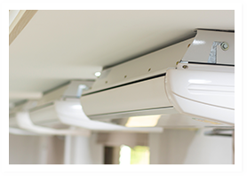業務用エアコンは使用される場所の形態に合わせて種類がございます。天井埋込み形や天吊形など業者によっては対応できないものもありますがKUROTECでは対応いたします。修理やクリーニングのお問い合わせの際はどのタイプのエアコンなのか教えていただけるとスムーズです。